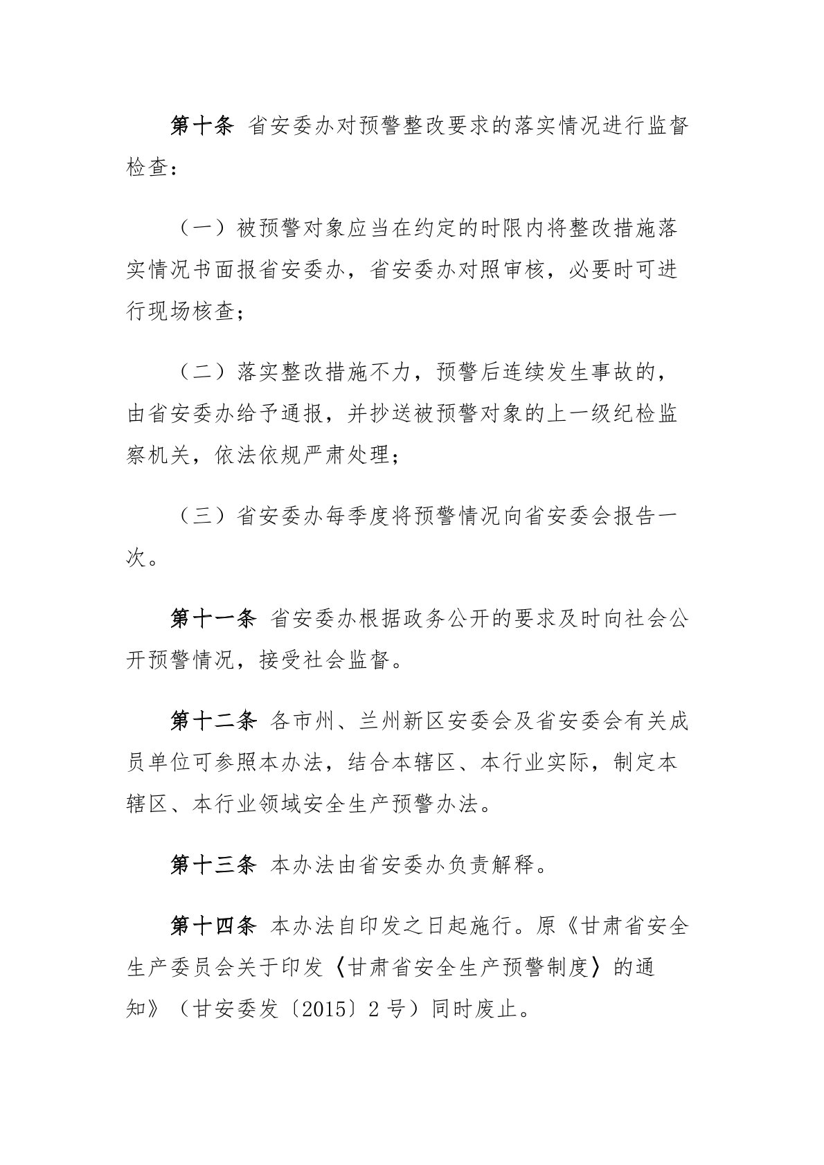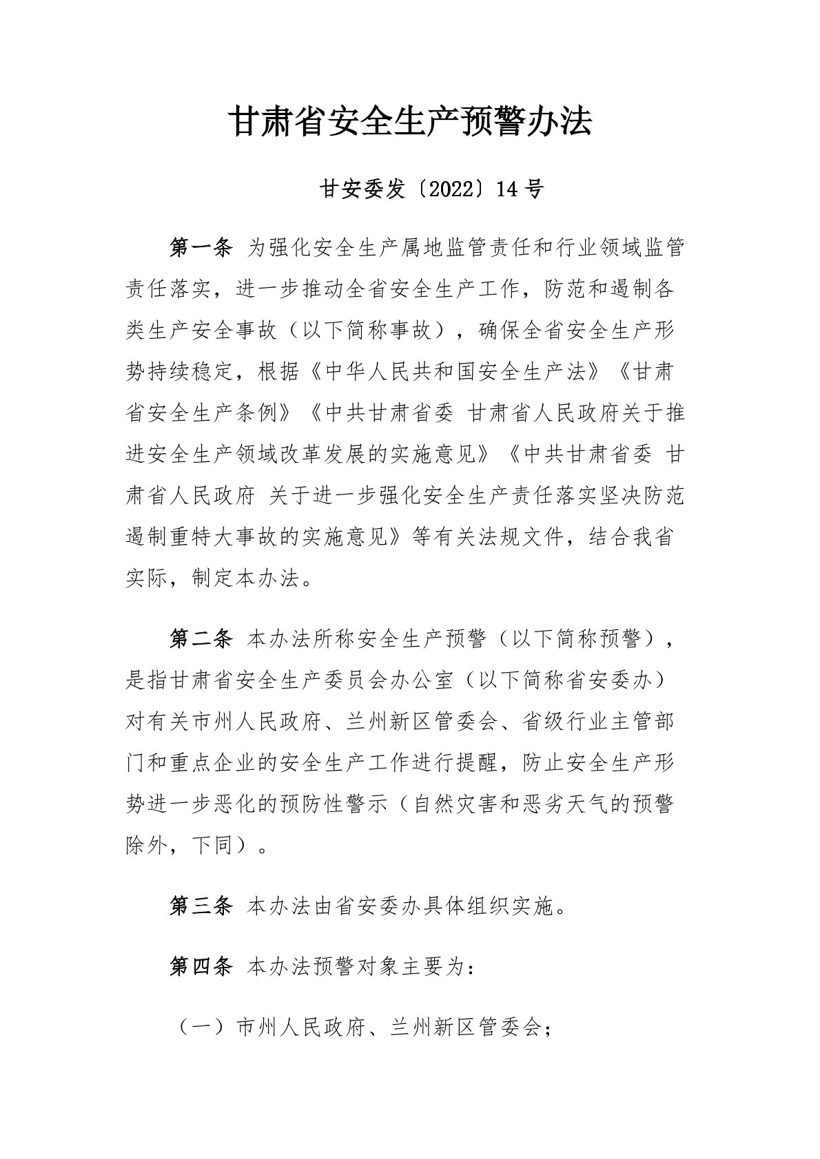 甘肅省安全生產(chǎn)預(yù)警辦法