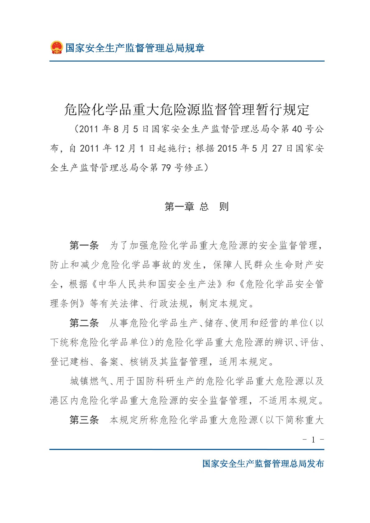 危險(xiǎn)化學(xué)品重大危險(xiǎn)源監(jiān)督管理暫行規(guī)定