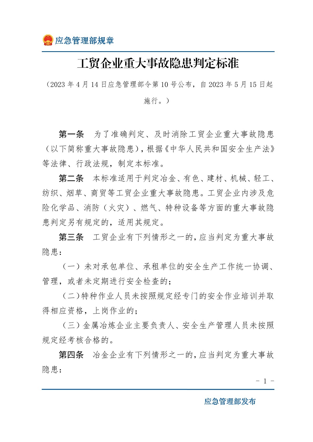 工貿(mào)企業(yè)重大事故隱患判定標(biāo)準(zhǔn)