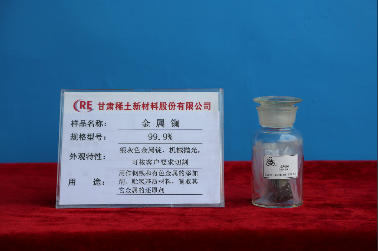 金屬鑭 Lanthanum Metal | TREM≥99 La/REM≥99.5 | 錠子或塊狀,金屬表面清潔、無電解質(zhì)夾雜、裂紋、新鮮截面呈銀灰Ingot or block, metal surface cleaning, no electrolyte inclusions,cracks, fresh section in silver gray | 用作鋼鐵和有色金屬的添加,貯氫基質(zhì)材料,制取其它金屬的還原劑 used as additive steel and nonferrous metals, hydrogen storage base material, reduction agent in producing other metals | 鐵桶包裝、凈重:250kg Package:Iron drum Net weight:250kg |